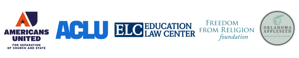 Attorneys authoring the letter include Alex J. Luchenitser and Luke Anderson at Americans United; Daniel Mach at the ACLU; Jessica Levin, Wendy Lecker, Patrick Cremin and Katrina Reichert at ELC; Samuel T. Grover and Kyle J. Steinberg at FFRF; and Brent L. Rowland and Morgan Bandy at Oklahoma Appleseed.